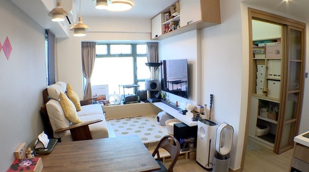 今集《塞錢入你袋》的單位採用日式風格,並且兼顧實用性,除了設置地台外,亦將其中一間房間打通改為多功能的和室,配合戶主的日常起居習慣。