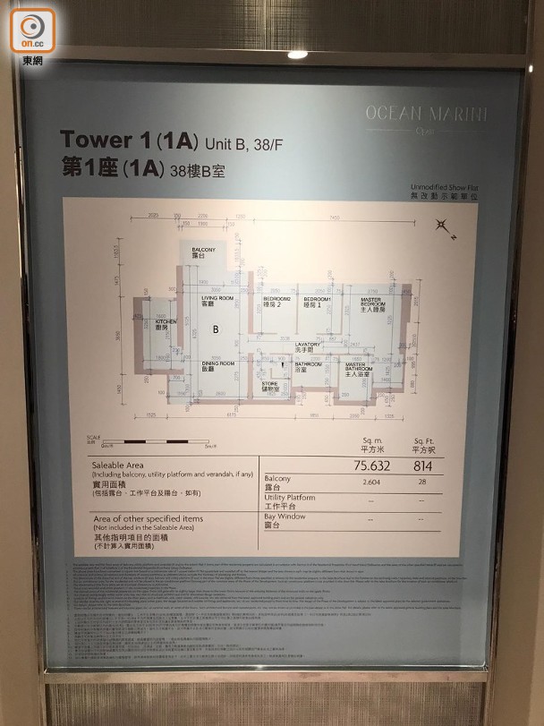 發展商推盤態度轉趨積極。會德豐地產旗下將軍澳日出康城OCEAN MARINI首度開放交樓示範單位予傳媒參觀,參照第1A座38樓B室搭建,實用面積814方呎。單位屬3房連儲物室間隔,大廳連接面積28方呎露台。