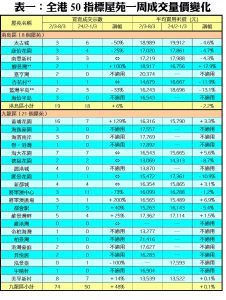 至於,新界區21個指標屋苑上周累錄70宗交投,按周增加1%,其中新港城及錦繡花園各錄5宗及4宗買賣,按周分別急增4倍及3倍;銀湖‧天峰亦有3宗成交,按周增加2倍;熱門上車屋苑嘉湖山莊連錄15宗交投,較前周的6宗大增1.5倍;愉景新城則錄得2宗買賣,較前周的1宗增加1倍。此外,在全港50個指標屋苑當中,上周共有5個屋苑錄得「零成交」,較前周的15個減近67%,當中九龍區及新界區各佔2個及3個,港島區屋苑則全線均錄得成交(詳見表一)。
