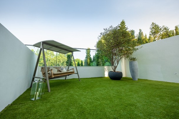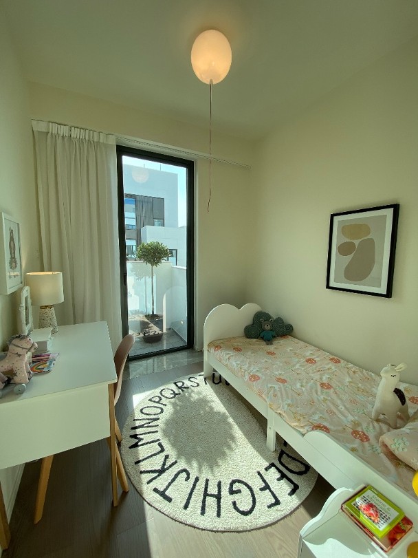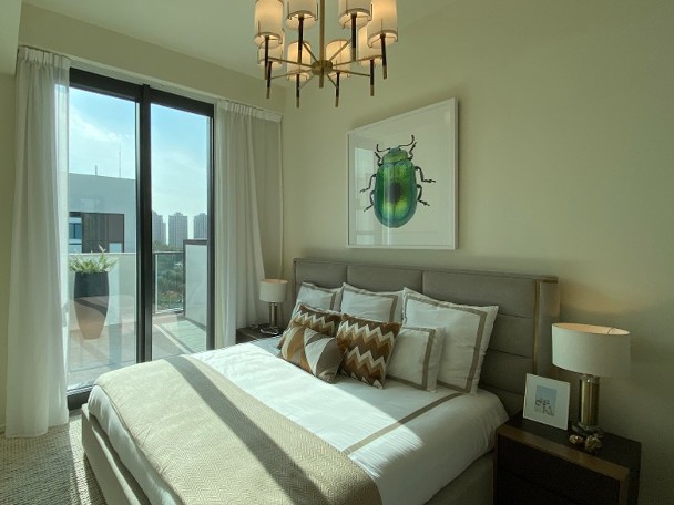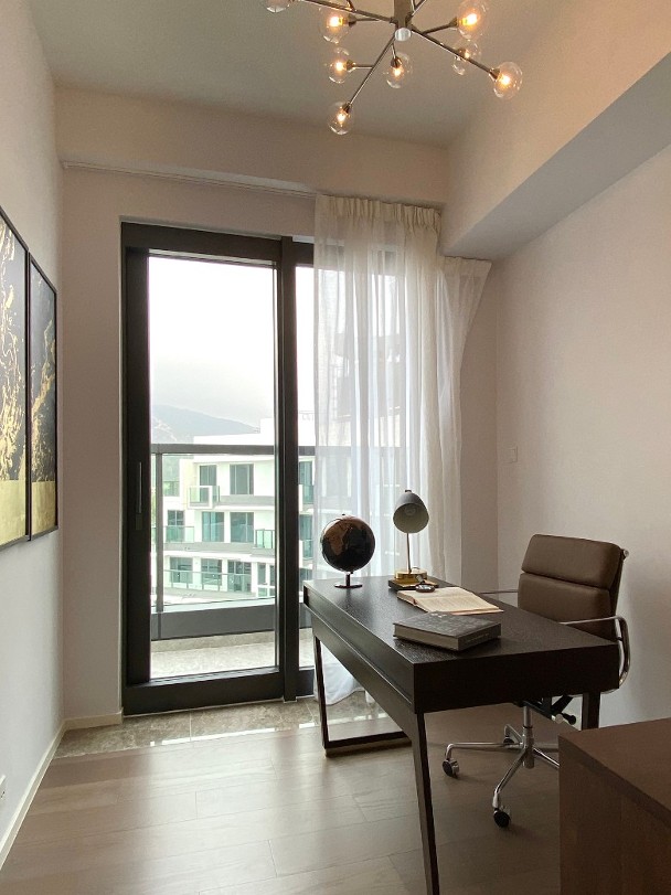 該盤82號示範洋房,實用面積1,740方呎,屬四房雙套間隔,連226方呎平台及365方呎花園。客廳以落地大玻璃趟門連接花園,而1樓及2樓為睡房層,2樓設有主人套房及一個書房。