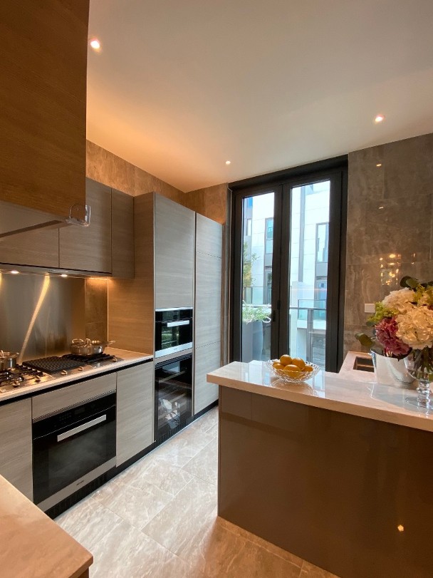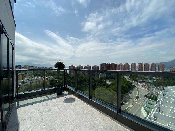 至於另一頂層複式示範單位,位於1座9樓及10樓E室,實用面積1,411方呎,屬四房雙套連工人房設計,並附設面積近900方呎平台及天台。其中客飯廳全長約10米,大廳連接平台,採光度十足。