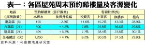 利嘉閣地產研究部主管陳海潮表示,美國兩周內合計減息一厘半,並重推QE救經濟,而儘管股市近日大幅波動,但低息環境持續有利置業供樓,購買力於二手市場繼續搵「筍盤」。根據利嘉閣地產研究部數據估算,全港50個指標屋苑共錄1,260組客戶於本周末預約睇樓,按周上升4.1%。新盤表現不俗,反映資金仍較為樂觀,料部分向隅客或流入二手市場。