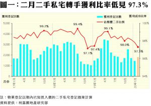 二月私宅轉手97.3%獲利 創15個月新低 疫情持續 獲利比率及賺幅恐續受壓回落