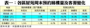 按地區劃分,全港三區指標屋苑的周末預約睇樓量兩跌一持平,其中以九龍區的跌幅較多,該區21個指標屋苑於周末暫錄490組客戶預約睇樓,按周減少2.0%。利嘉閣地產都會豪庭分行首席聯席董事鄧達榮表示,雖然近日本港疫情有所升溫,但由於區內業主願意減價,抵消負面情緒,本周末新都城預約睇樓量與上周相若。鄧達榮指出,近周業主態度再次軟化,吸引部分用家出手「撈底」,當中一千萬元以下放盤繼續受買家追捧,今個月新都城暫錄得14宗成交,表現不俗。