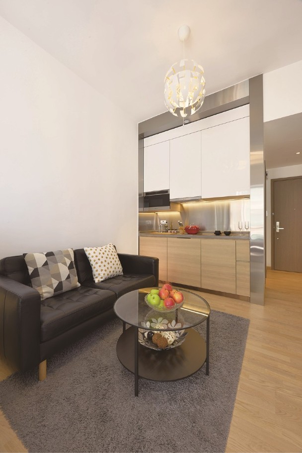 發展商為了突出每個單位的優點,分別打造了6款不同風格的示範單位。其中A室一房戶,實用面積386方呎,以簡約自然為主題,配以簡單線條的家具,帶出實用及華麗感覺。 該盤推出「優惠三重奏」,買家可享7%付款計劃折扣、6萬元傢俬折扣及3%從價印花稅優惠。扣除有關折扣後,新一批單位折實價621.1萬元起,呎價由21,953至24,216元。