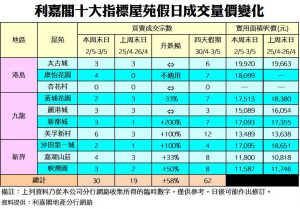 《利嘉閣十大指標屋苑假日二手實況》疫情穩定 市況反彈 二手交投噴射式上升 十大屋苑周末錄30宗成交 創近年新高
