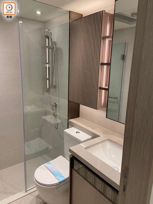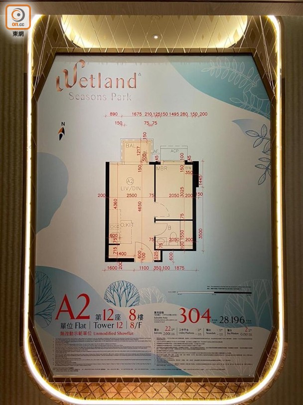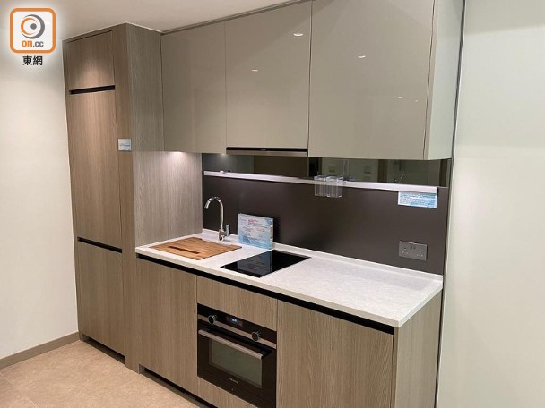其中參照第12座8樓A2室搭建的一房單位,實用面積304方呎,大廳連接面積22方呎露台,廚房屬開放式設計,單位內預設無線充電裝置。
