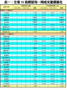 至於,港島區8個指標屋苑上周累錄28宗成交,按周增加65%,其中杏花村連錄4宗交投,較前周的1宗大增3倍;康怡花園交投量由前周的2宗,增加50%至上周的3宗;藍籌屋苑太古城連錄12宗買賣,較前周的9宗增加33%。此外,在全港50個指標屋苑當中,上周共有12個屋苑錄得「零成交」,較前周的8個增加50%,當中九龍區及新界區各佔6個,港島區全線屋苑均有錄得交投(詳見表一)。