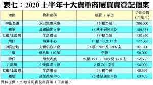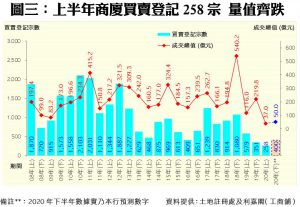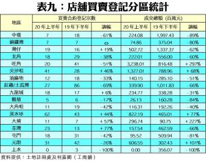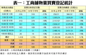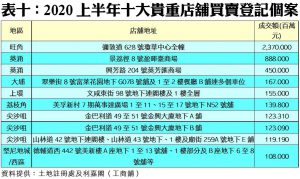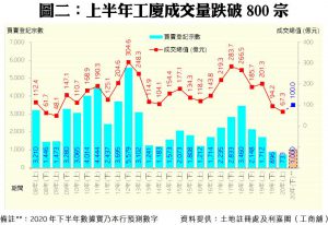 根據土地註冊處資料顯示,截至6月30日為止的2020年上半年,全港共錄得1,418宗工廈、商廈及店舖物業買賣登記,涉及登記金額達212.66億元,較去年下半年的1,755宗及434.85億元分別下跌19%及減少51%;若按年同比,則分別挫51%及跌65%;量值齊跌主要是受疫情肆虐影響,環球多國封關,商業活動及旅遊消費均見急挫,令市場不少參與者皆暫緩入市所致。