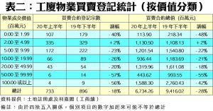今年上半年,工廈市場成交量主要由細價物業力撐,500萬元以下者已佔六成。其中價格介乎200萬至500萬元以內的組別錄得335宗登記,為7個價格組別中交投量最多者,佔整體工廈登記量達46%,並較去年下半年的329宗微升2%。值得留意的是,上半年高價工廈的買賣跌幅較顯著,1億元或以上者登記量急挫56%至只有4宗,而介乎5,000萬至1億元以內者更大跌57%至6宗,反映投資者在疫市下對巨額投資皆有一定戒心(見附錄表二)。
