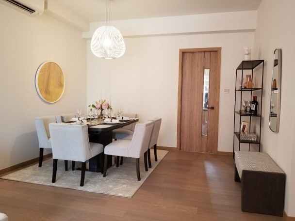 上述全新現樓示範單位為3座7樓C室,客飯廳分明以長方形設計,配備大玻璃窗戶及露台,享有項目綠化空間景致,室內設計以簡潔風格為基礎。該單位暫未有新銷售計劃,發展商安排下周一開放予公眾預約參觀。