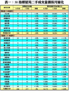 八月份當局實施兩人限聚,影響睇樓活動,樓市交投氣氛相對疲弱,導致八月全月50指標屋苑交投量持續偏軟,僅錄707宗,按月再跌2%,連跌3個月,是近6個月以來最少。全港三區交投量之中,以港島區跌幅最大,僅錄100宗買賣,按月少28%。九龍區買賣也跌3%,全月有268宗,而新界區則逆市升12%,錄339宗。月內交投最旺指標屋苑為嘉湖山莊,共錄得47宗成交,而沙田第一城及太古城則分別錄38宗及32宗,各列第二及第三位。