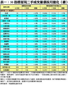 50指標屋苑上月平均呎價再跌1% 首八月累計升幅縮至0.5% 九月望企穩