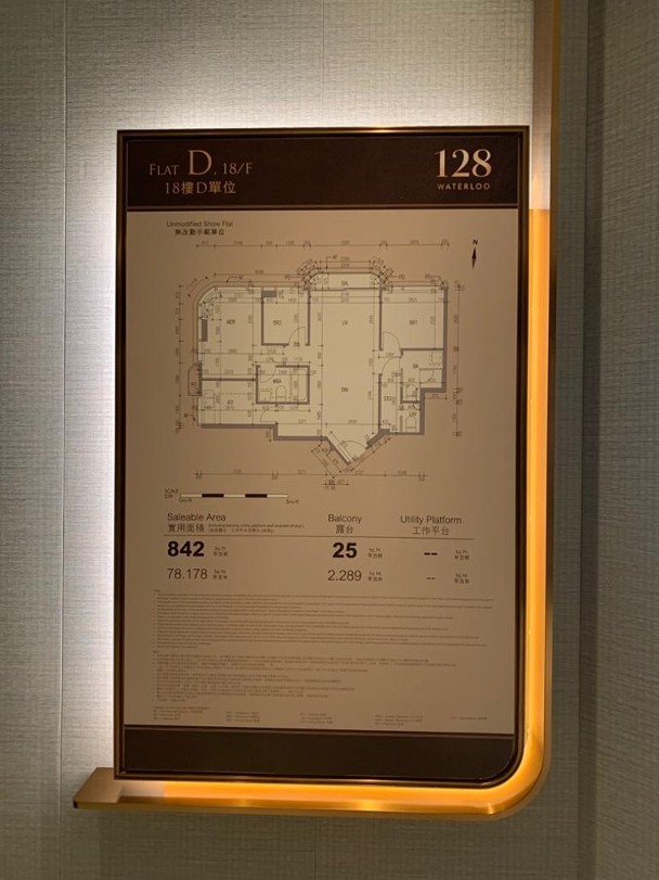 兩個交樓標準單位中,其中一個參照18樓F室而搭建,實用面積551方呎,兩房間隔,採開放式廚房設計,連一個22方呎露台,以及17方呎工作平台。另一個為同層D室,實用面積842方呎,三房一套房間隔,連一個25方呎露台。