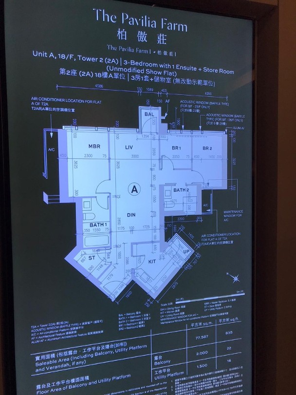 而以3A座18樓B室作藍圖的三房戶,實用面積663方呎,露台面積同樣為22方呎,主人套房連接16方呎工作平台。