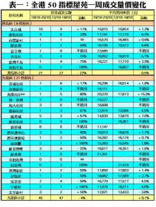 利嘉閣地產董事陳大偉表示,各區新盤反應理想熾熱,部分向隅客回流二手屋苑,整體市場氣氛大致暢旺,令50指標屋苑一周買賣宗數由低位回升。綜合利嘉閣地產分行數據所得,全港50個指標屋苑於上周(19/10—25/10)累錄133宗買賣個案,較前周(12/10—18/10)的111宗增加20%,創三周新高,並連續十一周穩守在一百宗以上水平。
