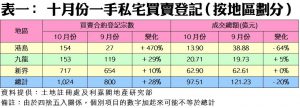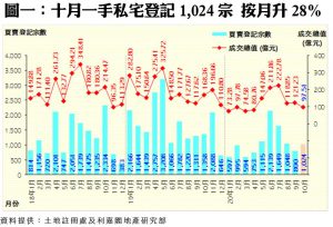十月一手私宅登記重上千宗 量升值跌 新盤熱賣 登記續來 本月勢破2,000宗
