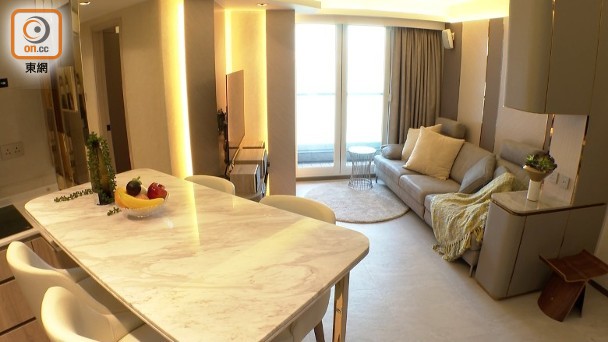 單位以大地色為主調,在配上香檳金鋼枝作點綴,令全屋散發低調奢華氣息。