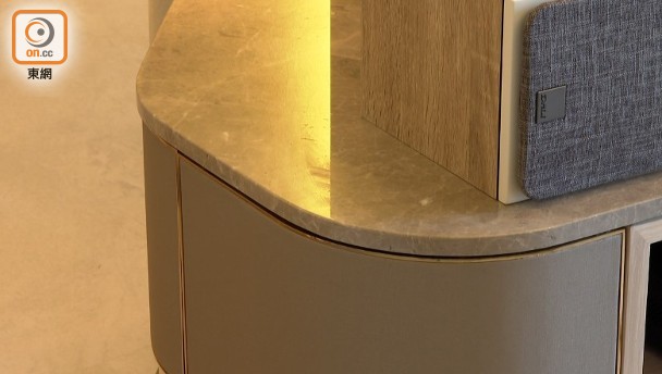 全屋採用大量圓角設計,大部分櫃身均包裹了柔軟的捫皮,美觀及實用性兼備。