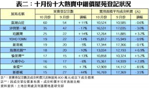 新盤推大單位 牽動換樓需求 十月中細價住宅買賣佔比68.1% 歷史次低