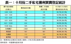 十月私宅轉手獲利比率創8個月新低 第四波疫情妨礙築底 年尾恐試97%邊緣