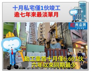 十月份僅1伙私宅竣工 逾七年來首見 首10個月13,689伙落成 僅佔預期66%