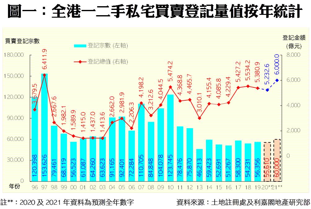 至於整體私宅成交金額方面,2021年若能受惠通關,加上換樓客繼續入市,豪宅陸續重新推出,一二手私宅合共成交總值料可漲約15%,有機會繼1997年約6,412億元的歷史高位後,史上第二度達致6,000億元的次高水平(見表一及附錄圖一)。