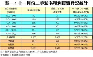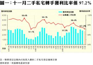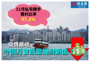十一月私宅轉手獲利比率97.2% 兩年最差 疫情嚴峻 本月難保97% 勢試54月低位