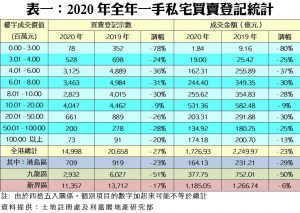 按樓價劃分,在介乎401萬元至2,000萬元的4個登記最活躍的銀碼組別之中,去年1,001萬至2,000萬元的組別成為登記量最多者,共錄4,047宗,按年只微跌9%,跌幅遠比其他銀碼組別為少,算是跑贏大市。反之,2019年最熱賣的601萬至800萬元組別,於2020年只錄得3,463宗登記,按年大跌31%,而價值介乎401萬至600萬元者更急挫36%,至3,125宗,反映2020年新盤銷售已不再集中向細單位及細價盤傾斜(見表一)。