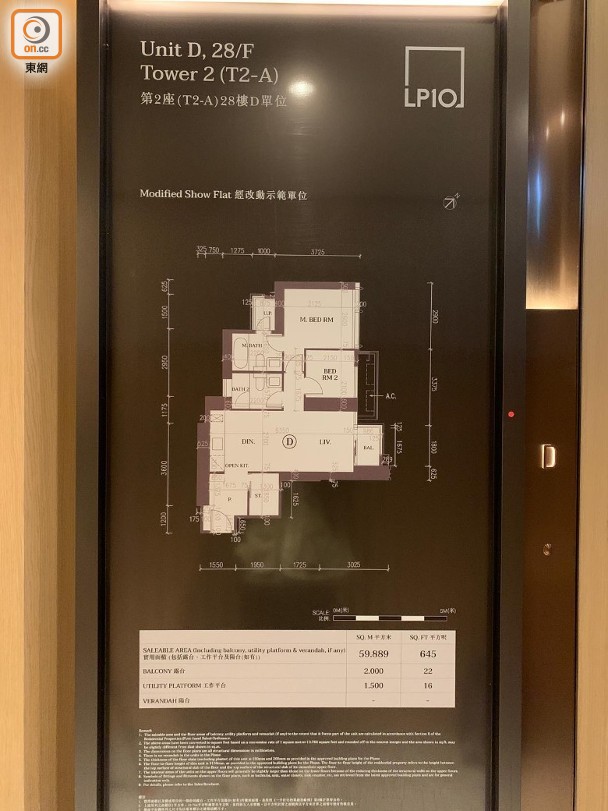 同時,根據第2A座28樓D室打造的兩房戶,實用面積645方呎,大廳設有面積22方呎露台,工作平台同樣位於主人套房浴室內。廚房則屬開放式設計。以第2B座28樓D室作藍圖的兩房單位,實用面積486方呎,廚房亦屬開放式,長方形大廳易於布置家具,並有露台連接,以加強通風及採光。
