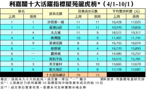 十大活躍指標屋苑上周成交79宗 嘉湖、第一城11宗買賣 連續三周封冠