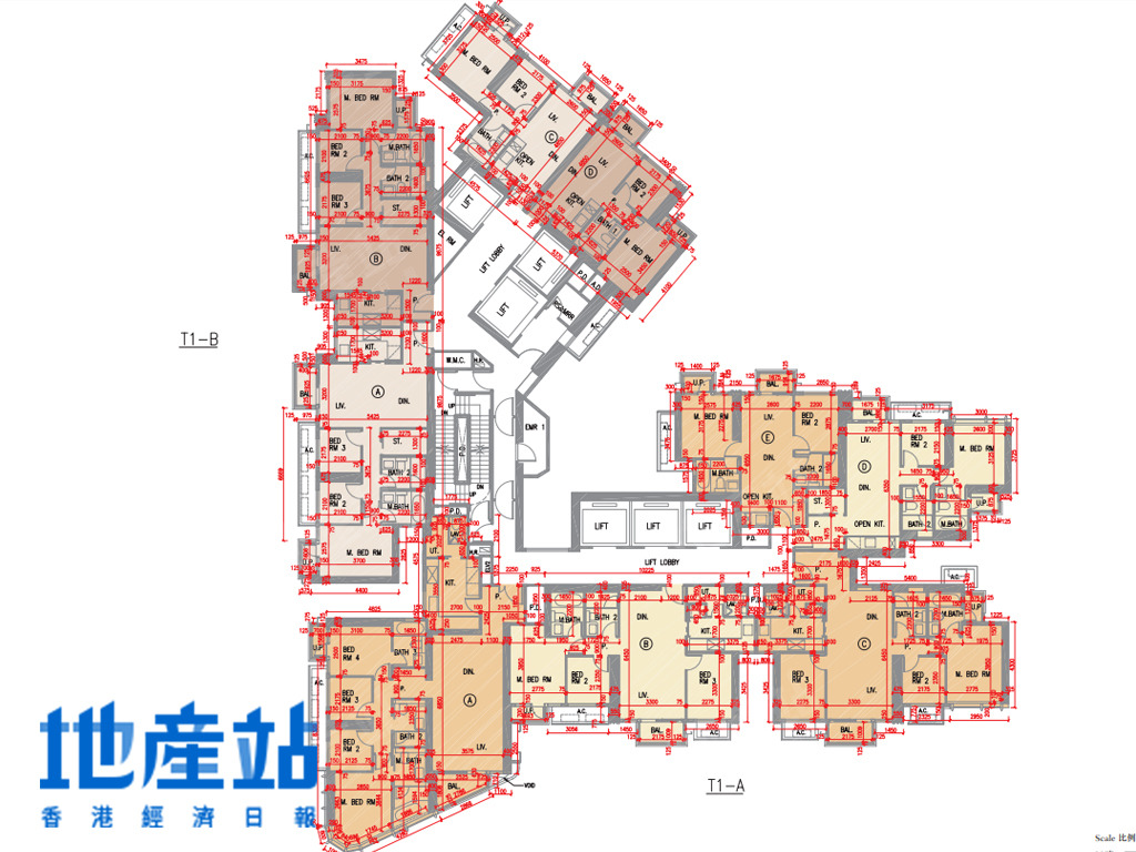 LP10第1座住宅細分第1A及1B座,標準樓層2至49樓為例,1層9伙設計,共用6部升降機,2房至4房單位供應,可細分內園景觀及外圍景觀單位。
