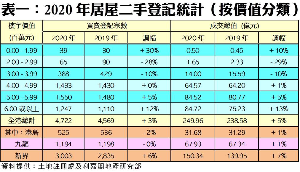 疫情無阻用家入市 成交總值迭創歷史新高 去年二手居屋登記4,722宗 四年最多