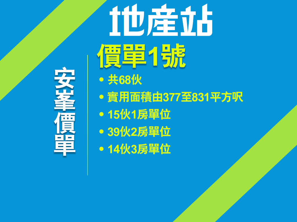 【新盤價單】一圖睇晒 安達臣道安峯1房至3房價單價錢