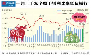 首月私宅轉手獲利比率97.2% 橫行三月 疫情減退 二月比率及平均賺幅料再升