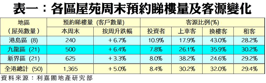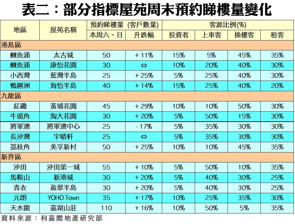市場氣氛正面 投資者套股換樓 50指標屋苑周末預約睇樓上升5.0%