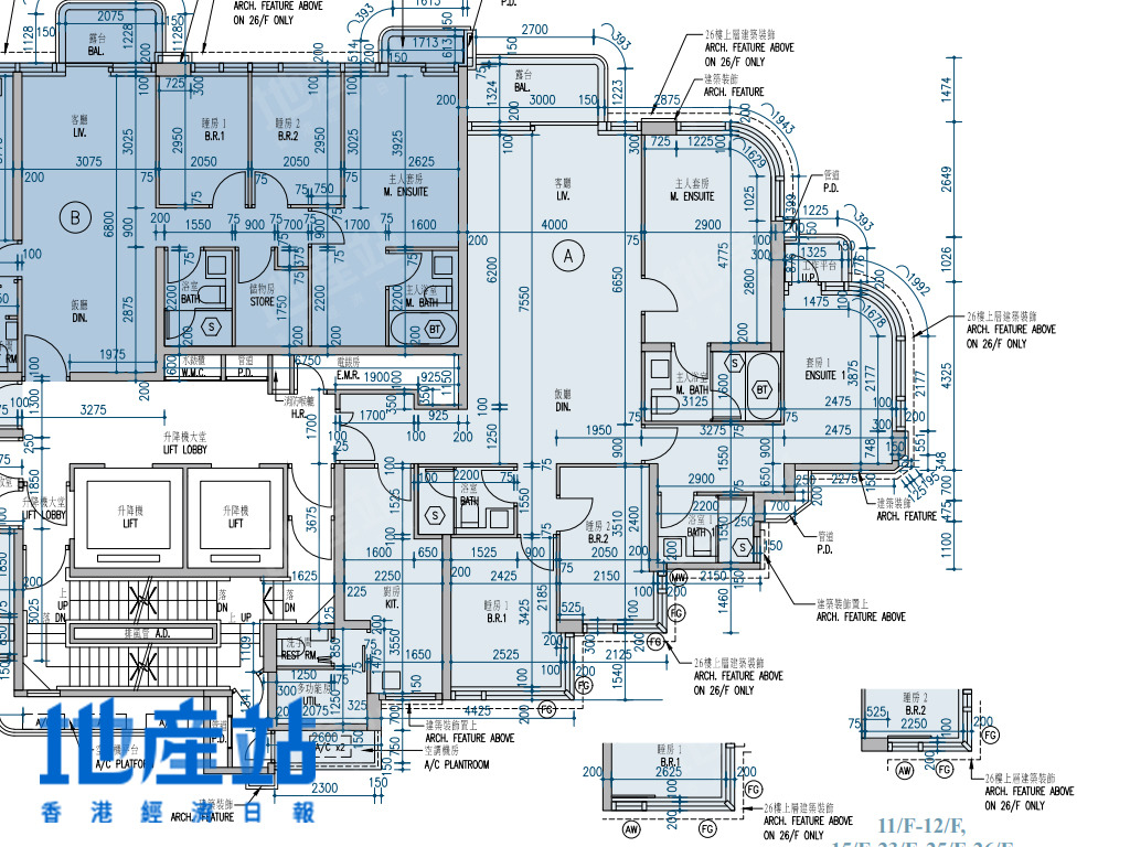 | A室 | 1385 | 4房(連雙套房)及工作間連廁 | 東南偏南方+西北偏北方 |