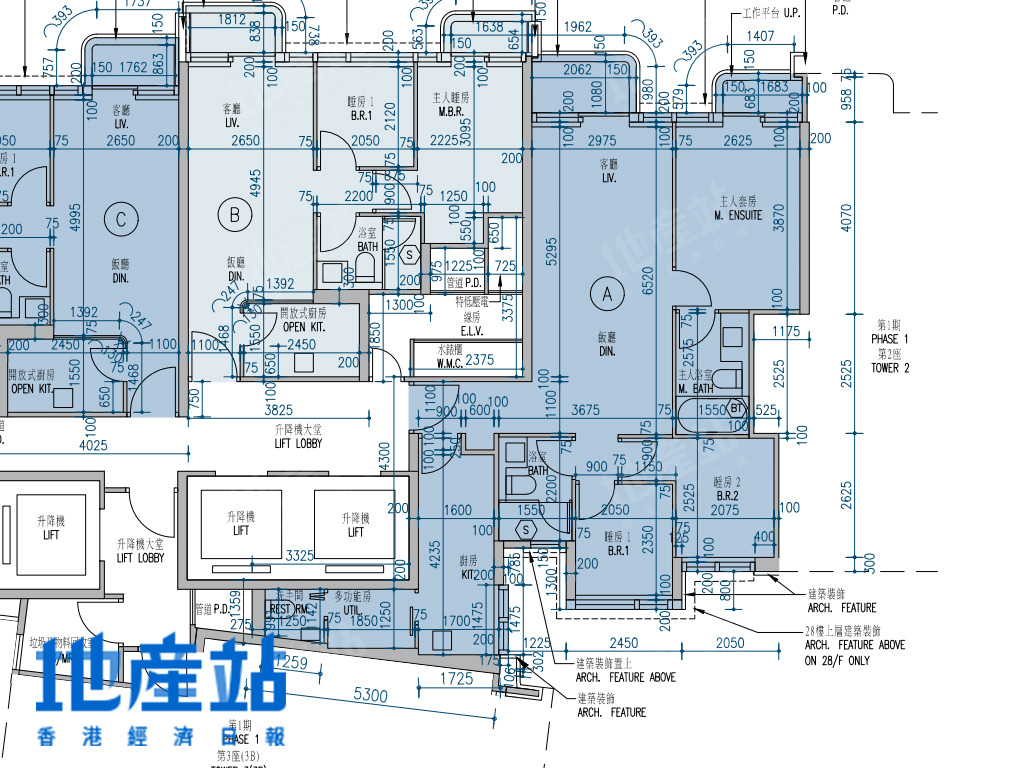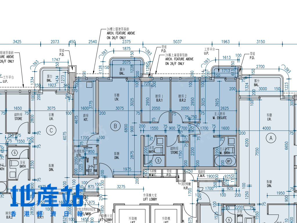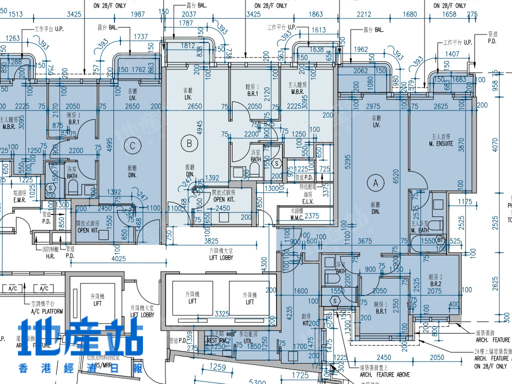 | C室 | 784 | 3房(連套房)及工作間連廁 | 東南偏南方+西北偏北方 |