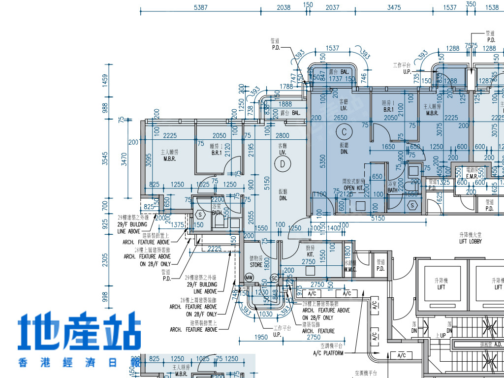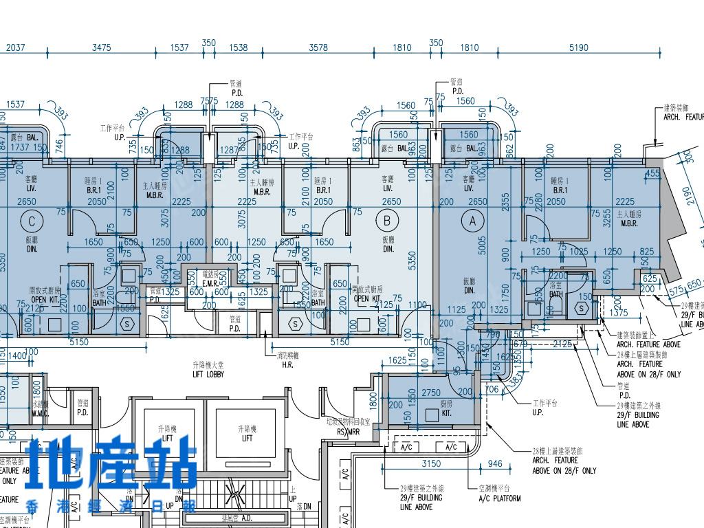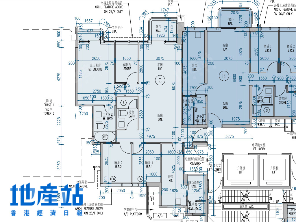 至於C室入屋為玄關,左邊為廚房,廳區長形,兩間細睡房向後面望西北偏北方,至於主人套房及儲物室與廳區同向,而儲物室為非主力牆,可打通擴大空間。