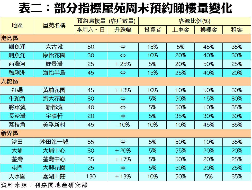 至於,港島區8個指標屋苑於周末暫錄260組客戶預約睇樓,按周上升2.0%。利嘉閣地產康怡區助理營業董事丁培鴻表示,康怡花園今個月暫錄10宗買賣,交投表現暢旺,一些質素平平的單位亦快速被市場吸納。丁培鴻表示,屋苑睇樓客量不俗,但由於新增放盤不多,平盤已所餘無幾,最近成交速度開始放慢,加上股市及本地疫情都較為反覆,料短期會影響部分資金入市信心。