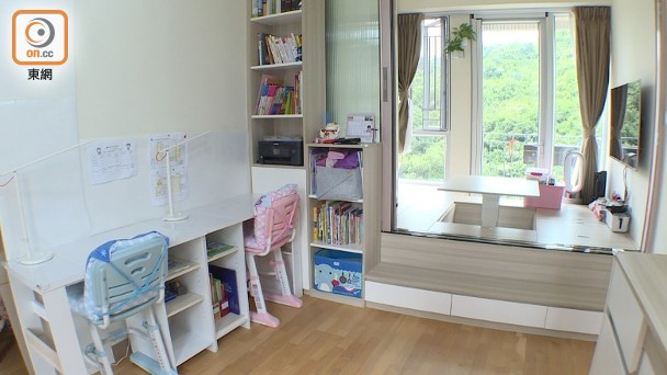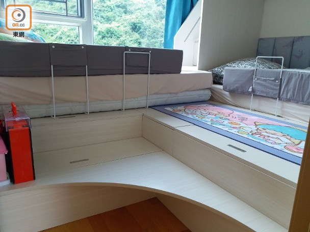 睡房均設有地台,但設計師考慮到戶主的女兒年紀小,於是貼心地在她們房間的地台加上半級樓梯,方便上落。