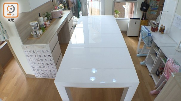 單位設長達2.3米的伸縮餐桌,不用的時可收在櫃內,節省空間。