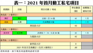 數據顯示,一月份共有3個私宅項目動工,涉及單位總數合共85伙,當中包括灣仔活道1至1A號,涉及單位42伙;此外,長沙灣昌華街7、7A、9及9A號,亦已於一月份展開上蓋建築工序,同樣涉及42伙;至於,石澳大浪灣道9號,涉及單位1伙,亦於月內展開施工。