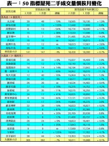 二月份因有農曆新年長假期,工作日數較少,加上前半月仍未放寬限聚,故令二手屋苑交投自高位出現回落。二月全月50指標屋苑交投錄893宗,按月減少13%,為連升3個月後再度回軟,不過仍處過去23個月以來的第三高水平,交投尚算不俗。全港三區交投量之中,新界區按月跌21%,錄387宗買賣。九龍區買賣也跌7%,全月有365宗,而港島區微減4%,錄141宗成交。月內交投最旺指標屋苑為嘉湖山莊,共錄得50宗成交,而太古城及美孚新村則分別錄39宗及38宗,各排第二、三位。