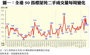 利嘉閣地產董事陳大偉表示,經過早前一輪急速消化後,二手筍盤所餘無幾,買家需要時間適應新叫價,導致上周交投略為減慢,但整體氣氛仍然保持不俗。綜合利嘉閣地產分行數據所得,全港50個指標屋苑於上周(15/3—21/3)共錄202宗買賣個案,較前周(8/3—14/3)的256宗減少21%,仍然維持在二百宗以上的近年高位。