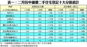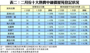 二月中細價樓買賣佔比升至69% 後勁不繼 換樓頻 豪宅旺 本月中高價佔比料創新高