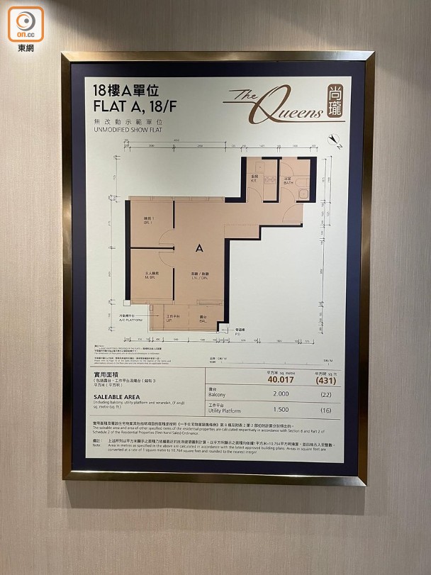 大批新盤全速籌備開售。富豪國際(00078)旗下西營盤尚瓏,積極部署4月登場,周一(29日)首度安排傳媒預覽示範單位, ,其中參照18樓A室搭建的兩房戶,日後會連同展示的同樣裝修及家具出售。該單位實用面積431方呎,大廳空間四正,並連接面積22方呎露台及16方呎工作平台,廚房屬傳統獨立「梗廚」設計,與浴室一樣設有窗戶。