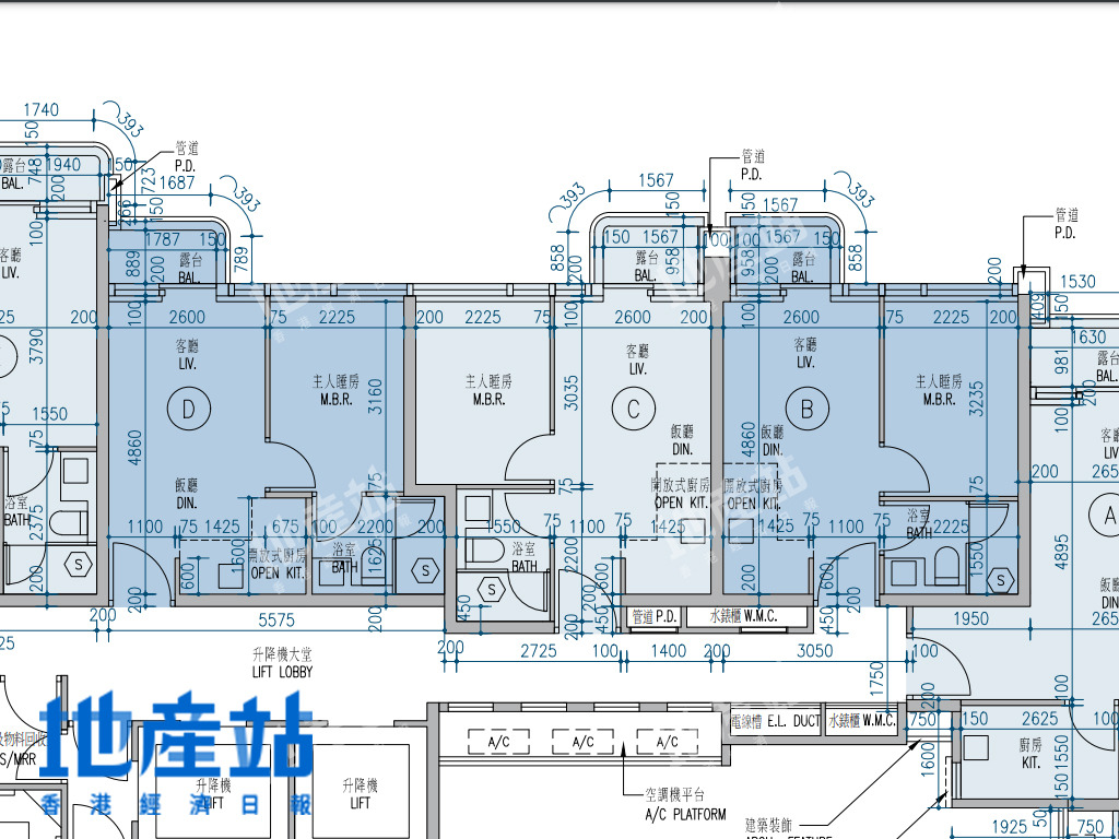 B室、C室同屬淨1房,開則類近,分別在於浴室擺位,不設走廊間隔實用。D室1房(連套房)間隔,廳區空間稍大,浴室置於主人睡房內。