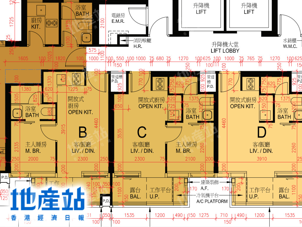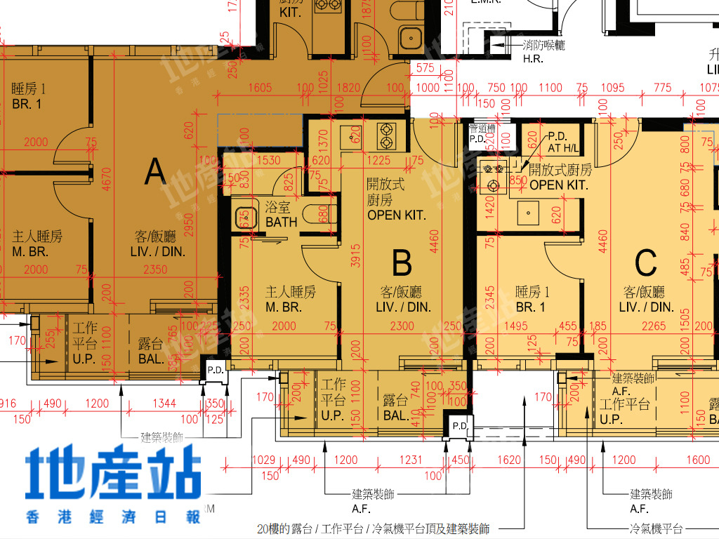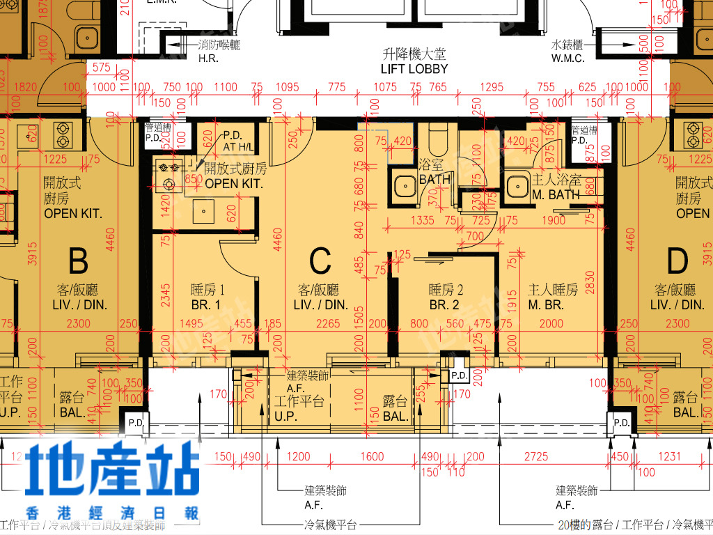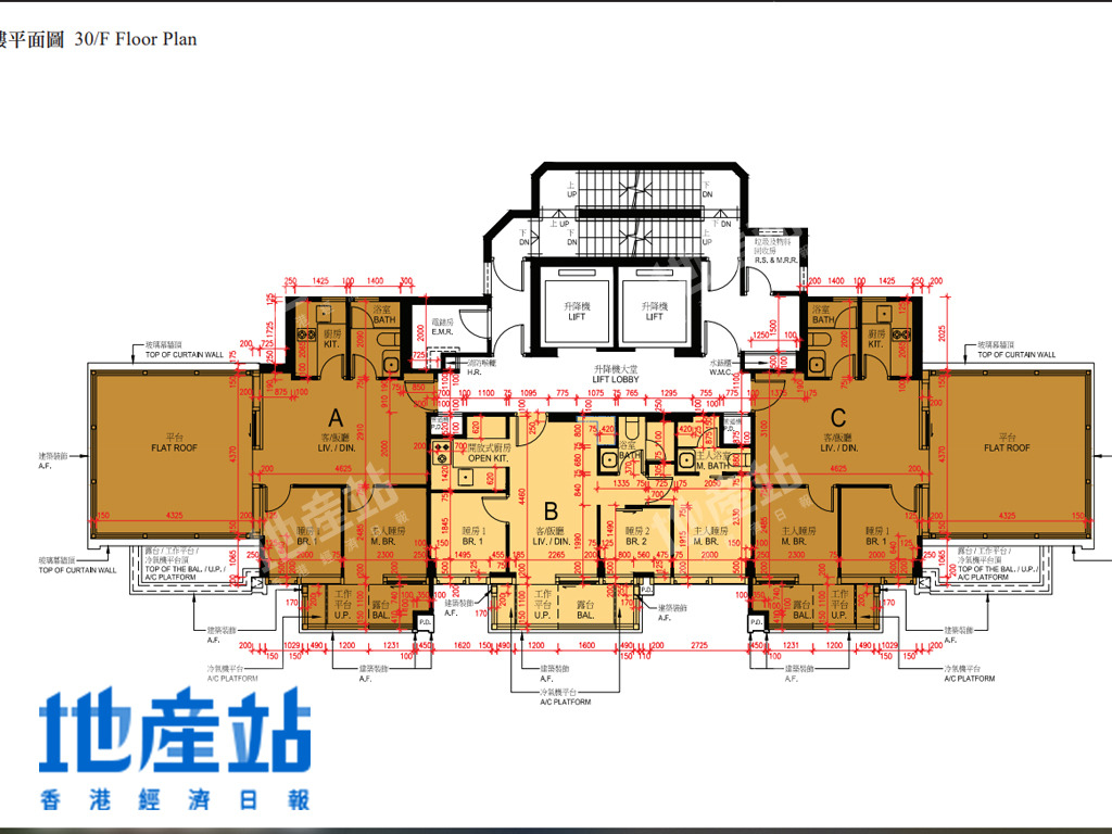 值得留意,樓層較高的30樓已變成1層3伙設計,A及C室屬於特色單位,不過中間的30樓B室屬於標準單位,開則相等於樓下21至29樓C室,惟面積輕微稍大為483平方呎。不過同類3房單位的工作平台及露台旁各有1個冷氣機平台,準買家須留意。
