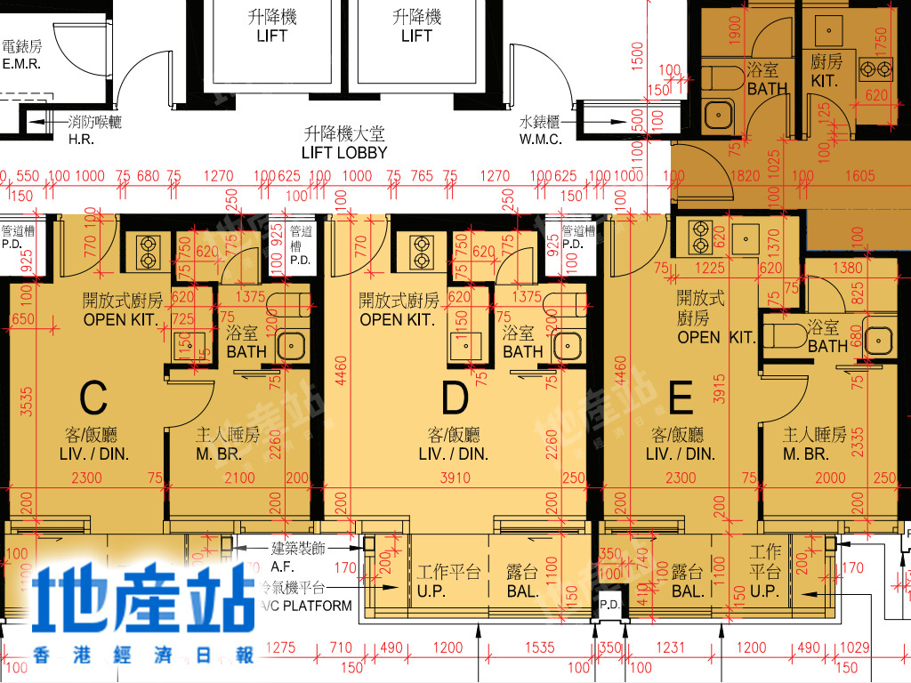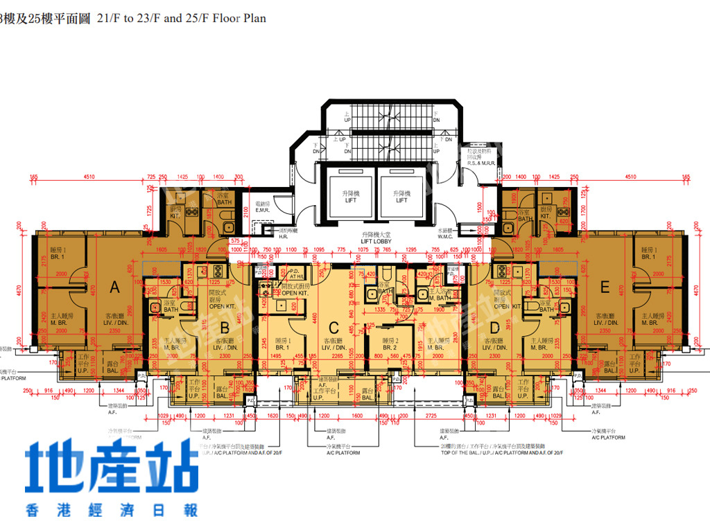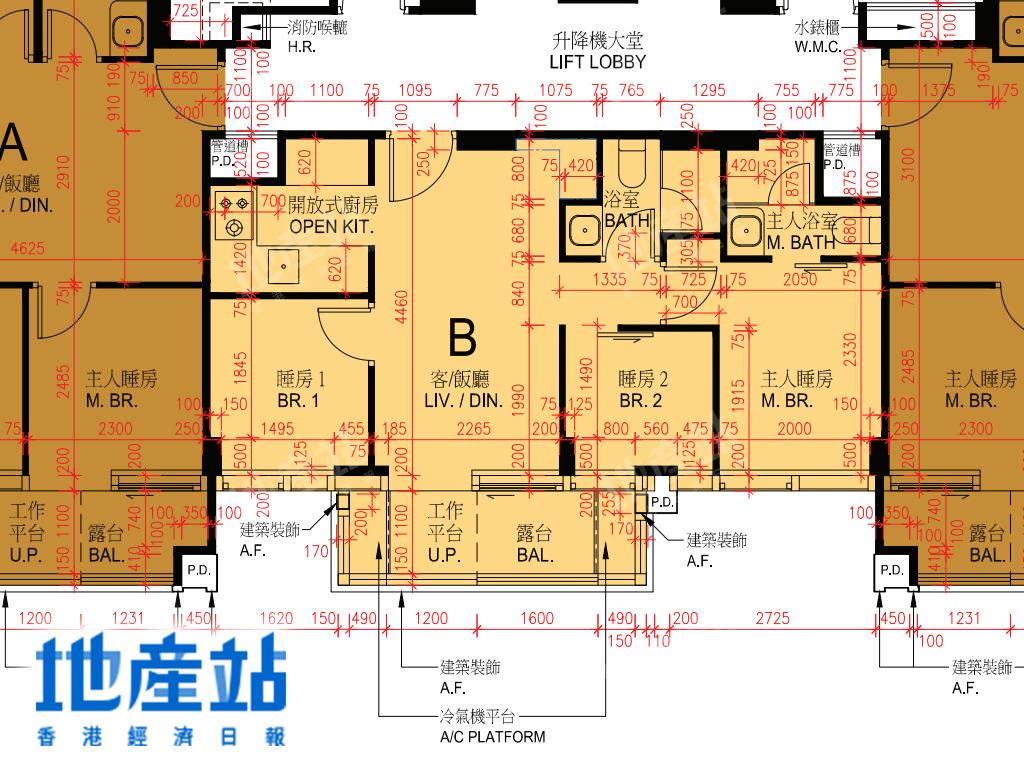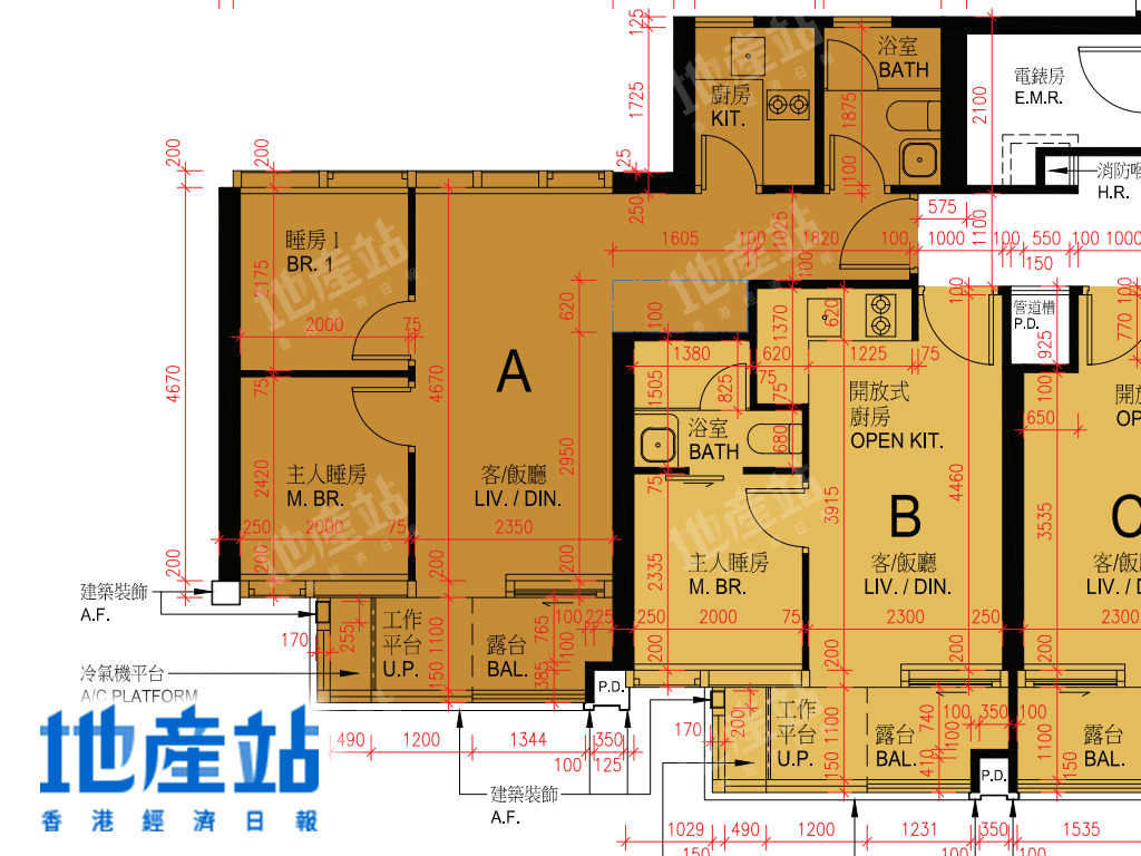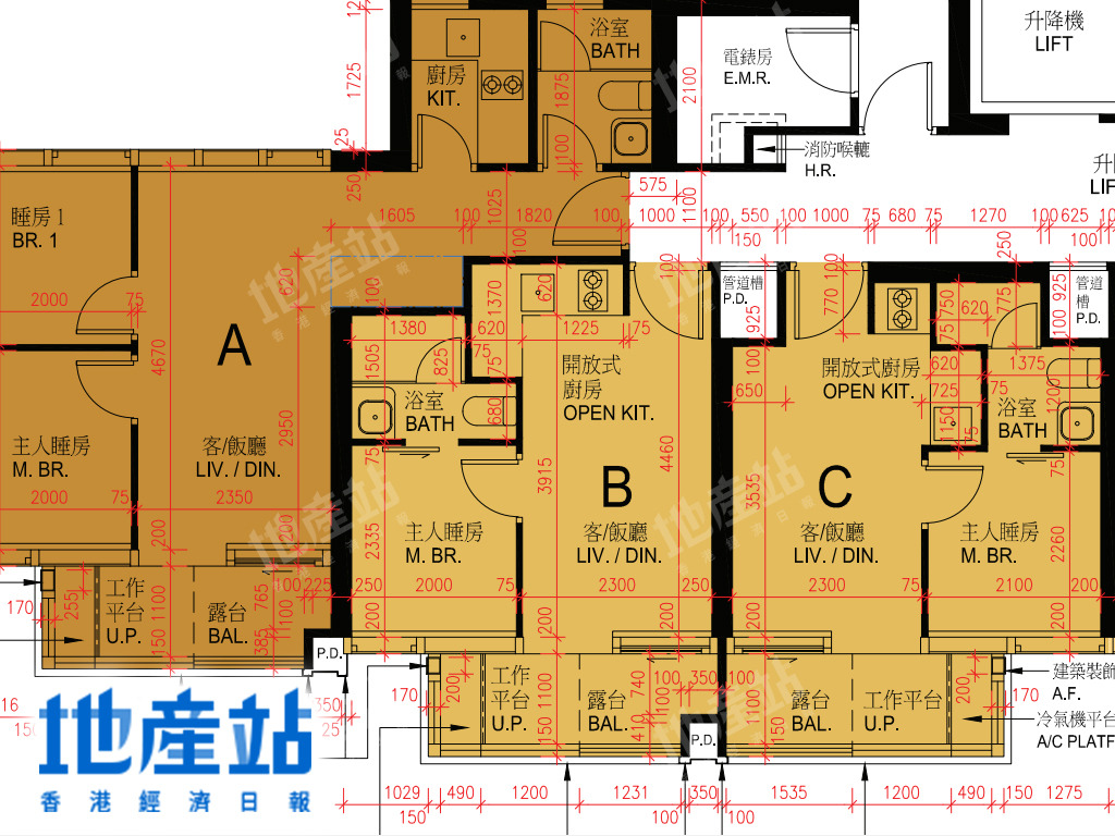 值得留意,樓層較高的30樓已變成1層3伙設計,A及C室屬於特色單位,不過中間的30樓B室屬於標準單位,開則相等於樓下21至29樓C室,惟面積輕微稍大為483平方呎。不過同類3房單位的工作平台及露台旁各有1個冷氣機平台,準買家須留意。